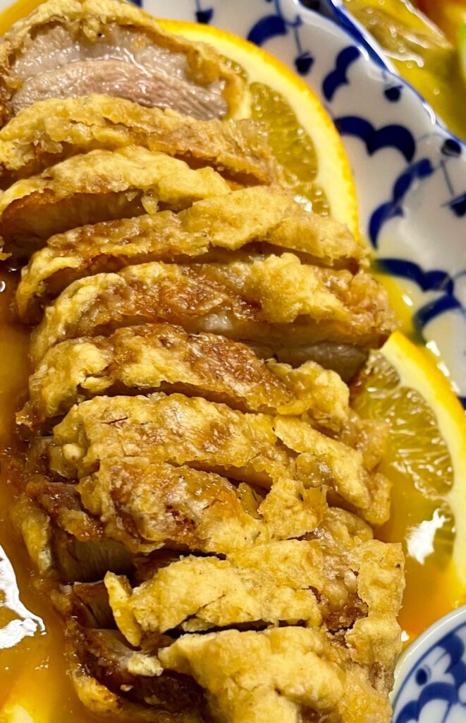 Knusprige Ente an Zitronenorangensauce
